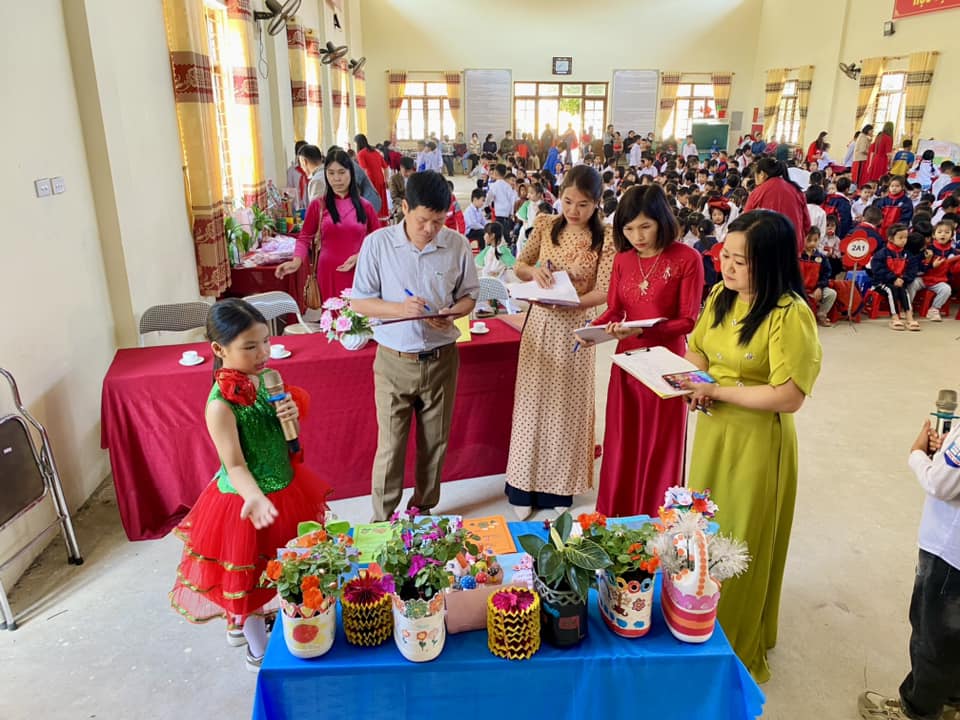 • Các em học sinh tham gia thiết kế và sáng tạo các sản phẩm như thiệp chúc mừng, mô hình, hoặc đồ dùng học tập tái chế.